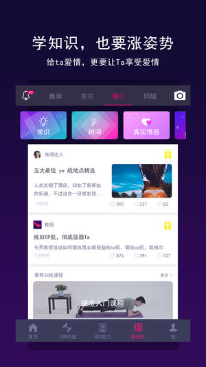 吱呀是一款关于性生活的健康app,用户们可以测试自己的能力以及需要改善的地方,还有各种方法以及教程,让你的生活更加美好,喜欢的快来下载吧。