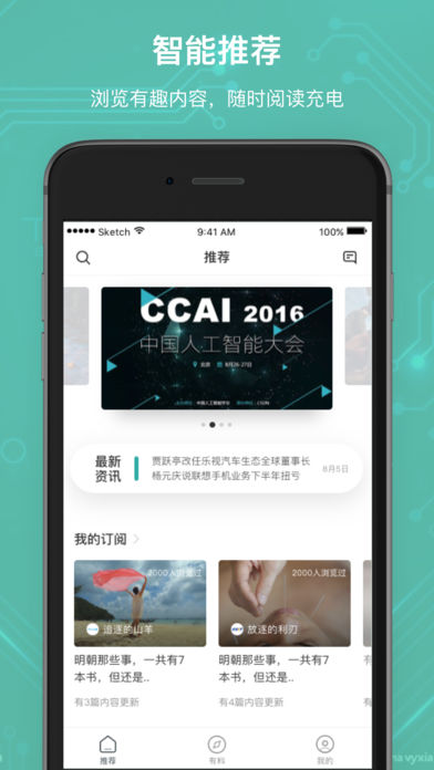 根据兴趣订阅想看的内容,系统将智能推荐给你新潮、火爆、有深度的相关好文;
