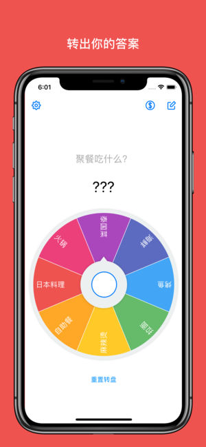 这个应用非常简单粗暴,点进去就是一个大转盘的页面,上方是无法决定的决定,点击转盘中心,就会转动,只要等到转盘停止,看看指针所指的地方,就是命运给你做出的选择啦!