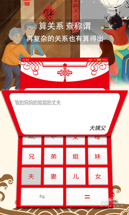 临近春节,为了解决您串亲时不知道对方叫什么的尴尬,我们特意推出了亲戚计算器,简单的界面,无任何学习成本,准确的计算您的亲戚之间的称谓关系,本计算器结合实际,只可以计算到四代以内,若有更多的需求,您可以反馈给我们