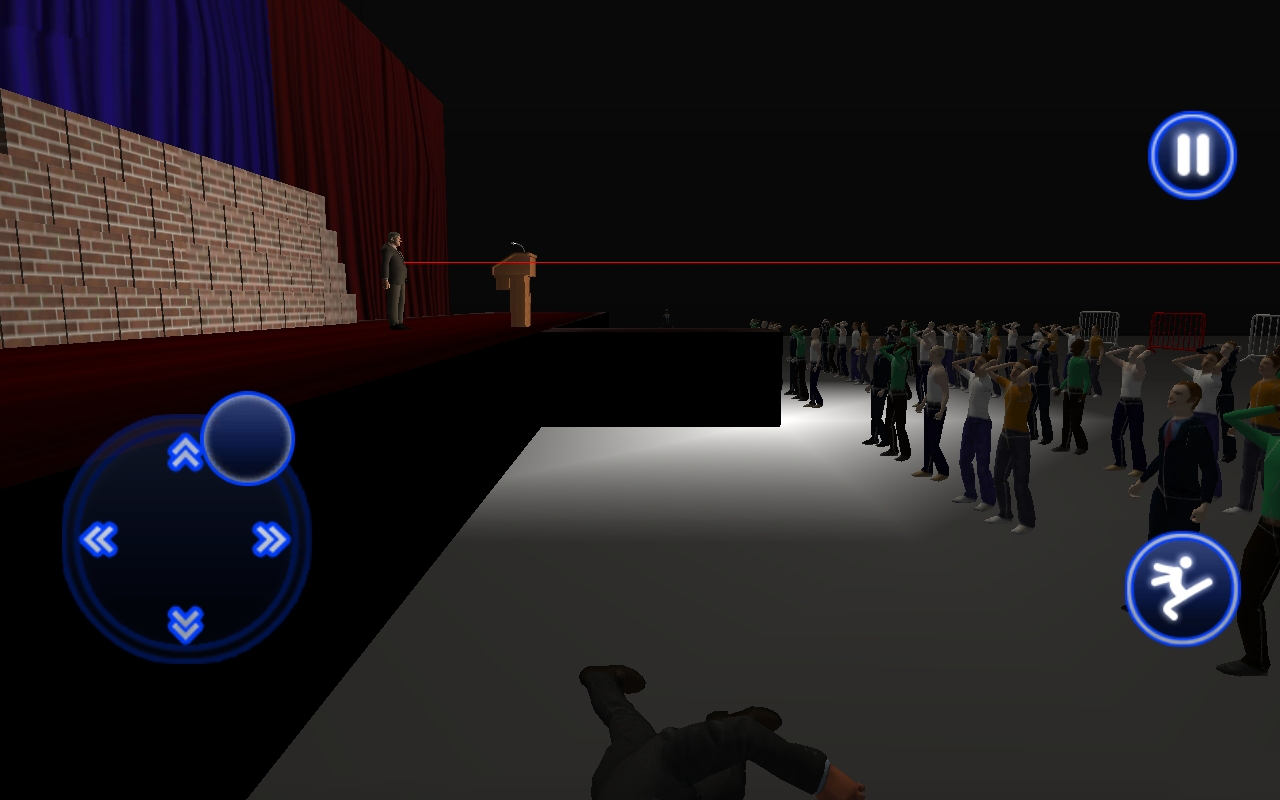 1、从目标杀手拯救总统转储并保存你的任务为下一个级别,通过跳跃并将他扔出子弹范围来拯救总统。