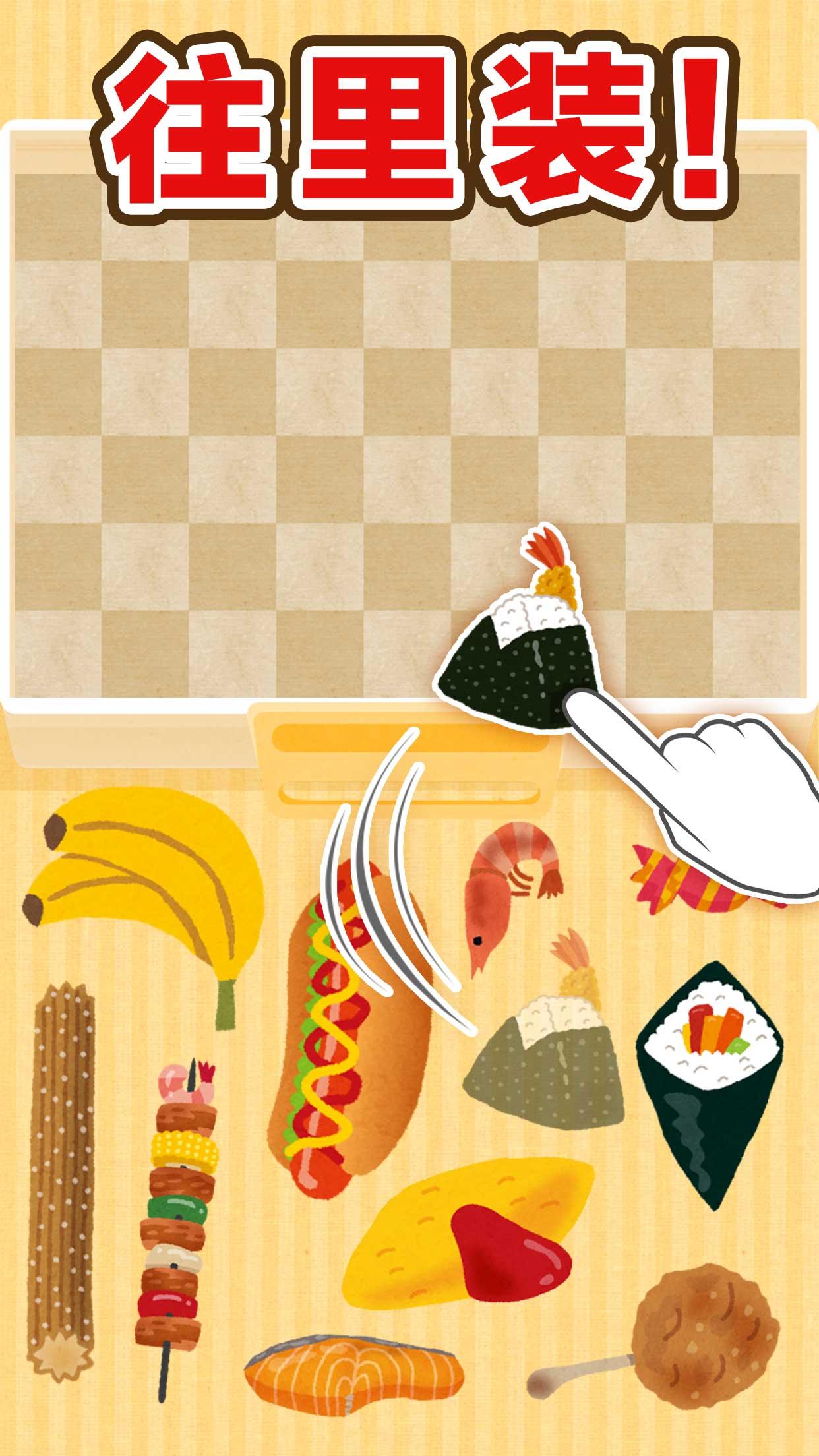 游戏是摆放类的 把各种美食放到小饭盒里就可以过关了游戏的话我觉得不是我这个年龄玩的 只要有时间 通关不成问题。