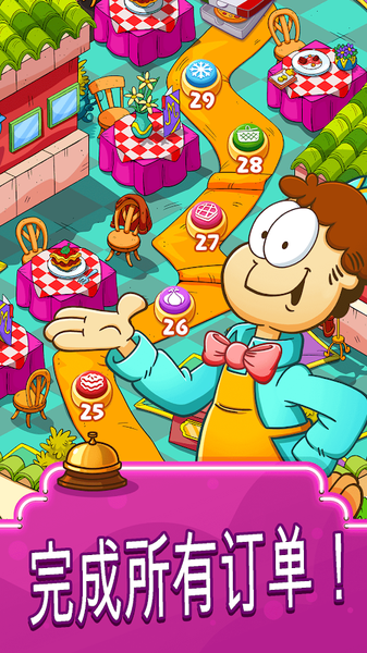 简单,精彩,直观!只需交换和消除游戏面板上 3 个或更多食材就能创造爆炸性的口味组合!