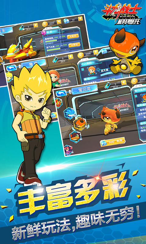 1、游戏的角色,场景与故事,均源于《斗龙战士3》动画片;