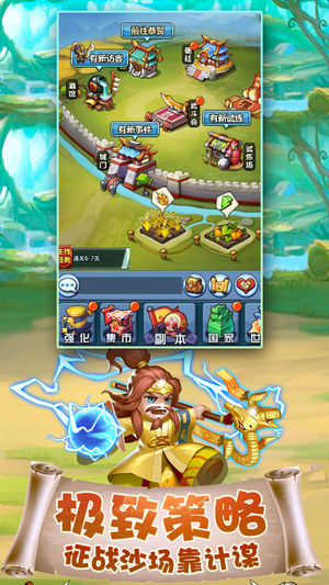 萌混三国是一款画面Q萌的卡牌收集策略对战手游,游戏中热血激情的剧情介绍和精美细腻的画面设计,庞大的世界地图探索,全新的策略玩法带给玩家全新的游戏体验!喜欢的下载试玩吧!