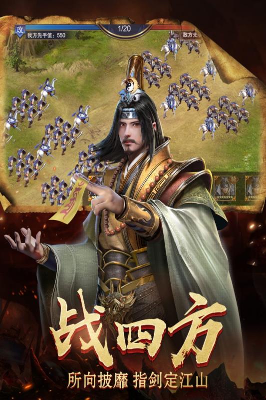 2、策略性玩法模式,各种武将军师合理搭配,组成最强阵容,挑战最强大脑。
