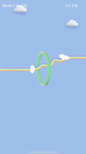 3、不停点击屏幕,使圆环的上下边缘不碰触彩虹或者连接彩虹的云彩。
