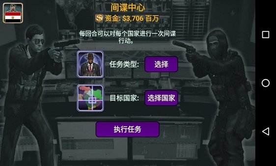 2、游戏包含:武器供应商(美国, 欧盟,俄罗斯和中国),间谍系统,作战室,外交,经济,科技,世界新闻 (经济,关系,间谍和战争)还有特别聪明的AI等;