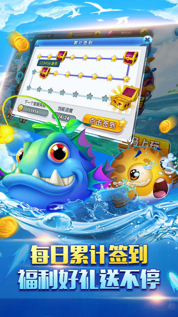 2、海量金币天天免费领,捕鱼惊喜永不停 。