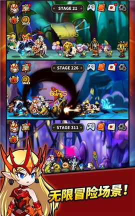 2、海量不同的冒险关卡挑战,随时开启等你来挑战;