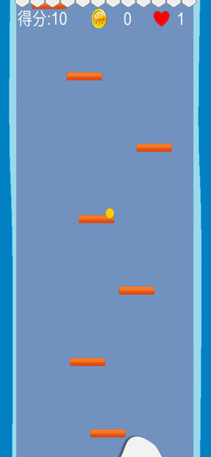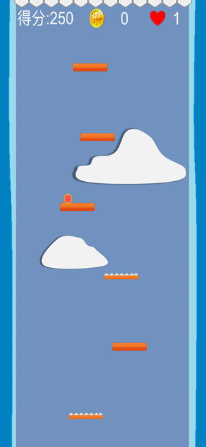 2、触顶、掉落、碰带齿的平板都会导致游戏结束。