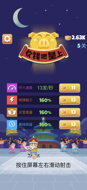 收钱吧皇上是一款玩法非常好玩魔性的趣味射击休闲手游,游戏里玩家通过滑动屏幕来进行控制角色射击,通过每一道关卡来完成任务得到奖励,超多精彩的游戏内容等你了解哦!