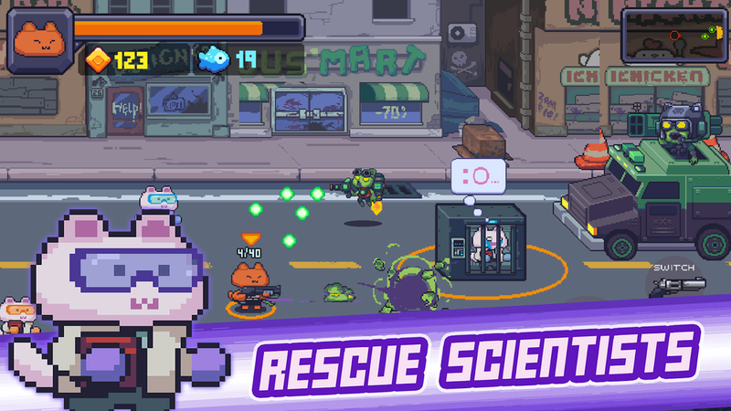 - 收集大量的动力枪,猫咪英雄和支援设备以克服挑战。