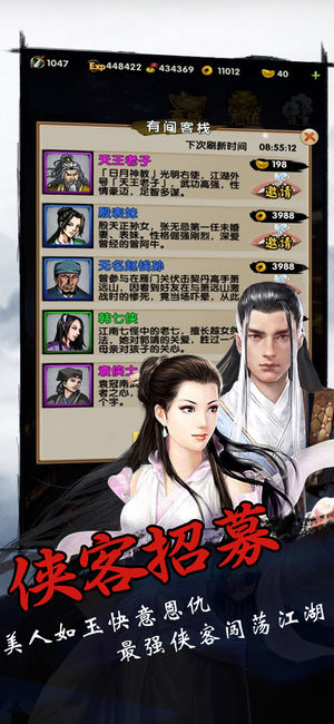 2、侠客招募,美人如玉快意恩仇,最强侠客闯荡江湖