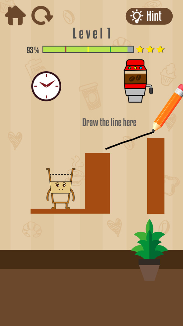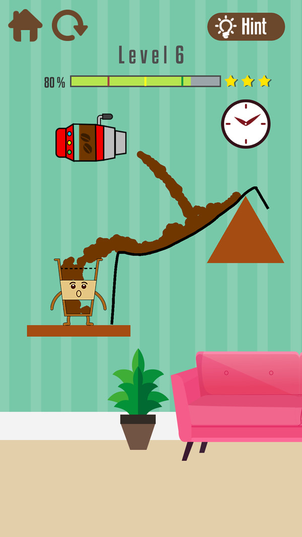 画线以创造咖啡到达悲伤咖啡杯的路径。 完全用咖啡填充,让悲伤的咖啡杯开心。 尝试找到自己最好的方法来绘制线条并完成每个级别而不使用提示。 完成3星级的所有级别,玩得开心。