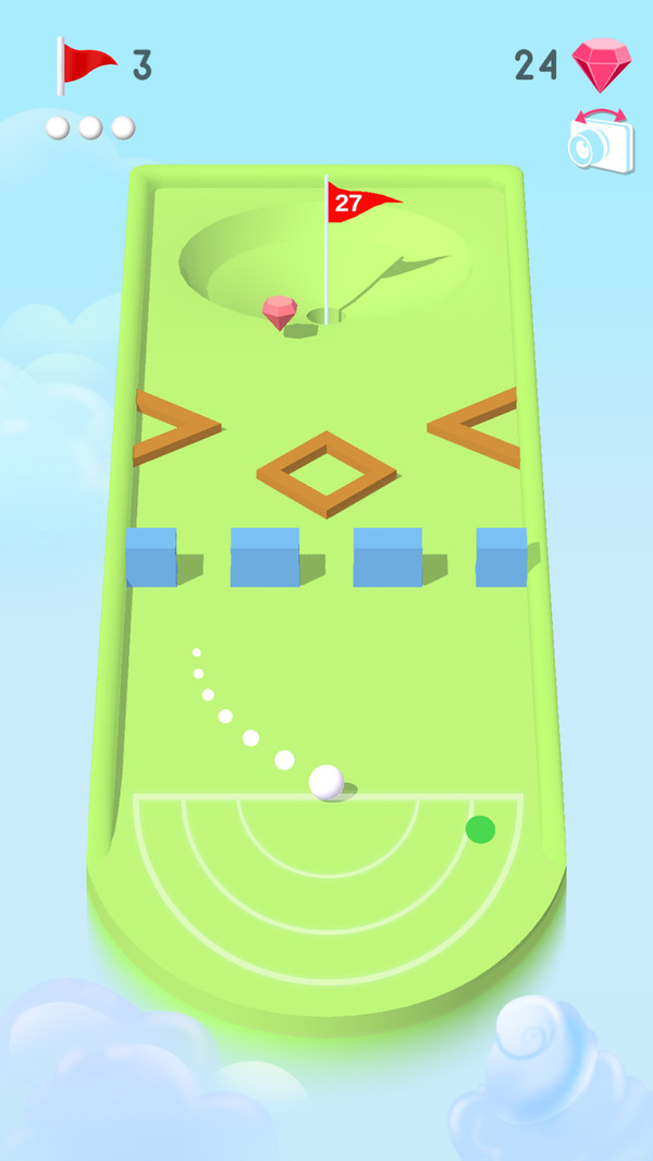 口袋迷你高尔夫游戏是一款趣味的高尔夫手游,玩法轻松简单有趣,操作简单易上手,游戏画面精致简洁,玩家需要做的就是将小小的高尔夫球投入洞中,每一关都是非常高难度的,在错综复杂的地形中利用一些地势优点来弹跳扭转方向,成功进洞,喜欢的快来下载吧!