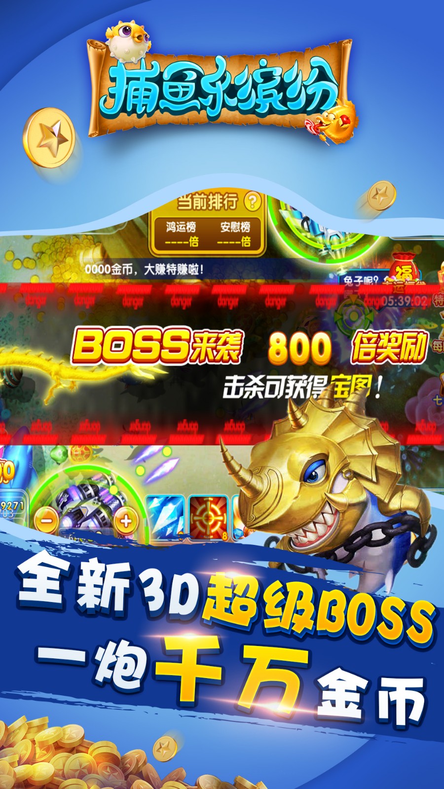 4、更多倍率!更多场景!更多华丽炮台!让街机千人捕鱼乐趣无穷!