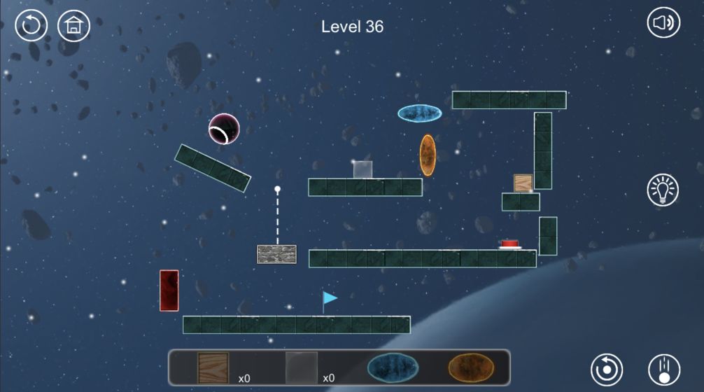 花了一个半小时全部通关了,没用过提示,有几关稍微有点卡住,用笨办法慢慢蹭强行过的,很多关有些给的地方完全没用到,比如最后一关的右上角。给过不去的玩家稍微提个醒,可以先把放块放在红砖上再放传送门,能以慢速进传送门,很多不能直接放砖块的地方可以靠小球推过去,一次不行就多试几次,碰到有遮挡的按钮可以先错位放一个,再放一个让他自然倒过去。有些需要玻璃块去的地方只能靠小球推的话可以在中间放一个木箱就能够间接推过去了。希望以后能出更多的关卡,以及美化一下UI。