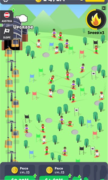 不同国家的数十个滑雪场,吸引更多的游客来你的滑雪场游玩,通过斜面坡度、场地设施、地价等内容,提升赚钱速度。