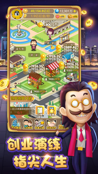 天天富豪游戏是一款休闲经营手游,玩法轻松简单有趣,操作简单易上手,游戏画面精致高清,在这里有众多经典的玩法,玩家将会白手起家在这里不断的发展自己的生意,众多的产业都在等待玩家的投资,重要的地方还需要玩家亲自去谈判,还有众多的知名人物等待你的招募,喜欢的快来下载吧!
