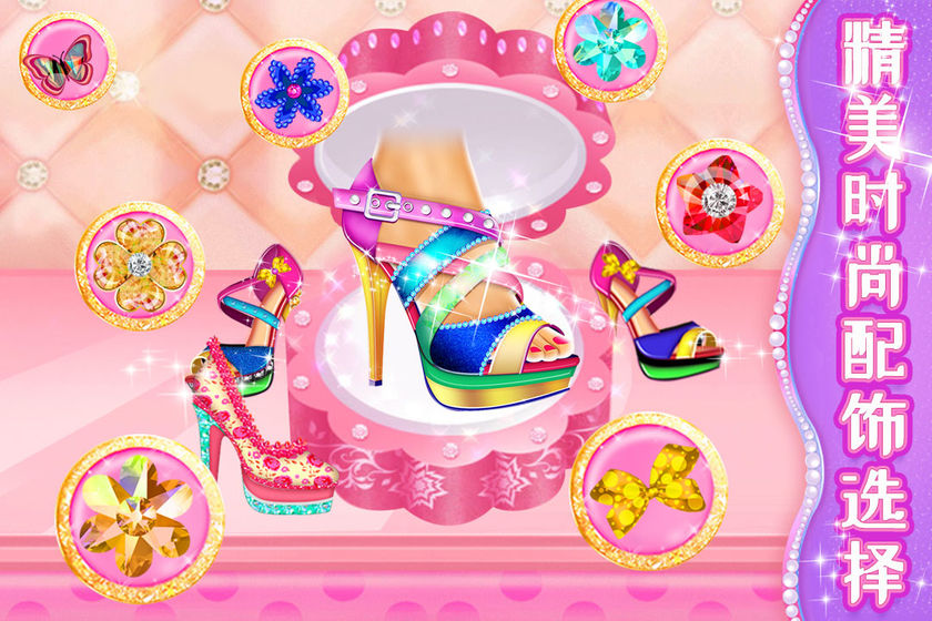 百种饰品随心搭配,自己手动打造最漂亮的皇家高跟鞋!发挥自己的创意,色调,饰物,花纹随你组合,搭配出个性高跟鞋!皇家公主专用作坊,一起来寻找属于自己的个性套装!