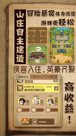 2、侠客:侠客组合自由搭配,告别单一培养。