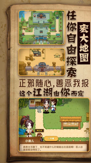 游戏采用了全开放式的剧情,使玩家能在游戏中获得极大的自由度。玩家可以在各个场景中体验剧情交流互动,钻研各项武功,结识性格迥异的侠客。也有可能发生各种无法预测的事件。随着玩家解开江湖中的悬念,可以自主选择在游戏的成长路线,探索出属于自己的武侠世界。