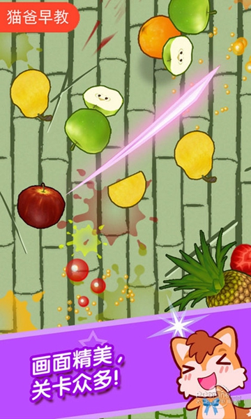 儿童开心切水果是一款有趣的益智游戏,通过不断的触摸屏幕来切水果需要集中注意力不漏掉任何一个水果,整个过程新奇有趣,水果的种类也五花八门。