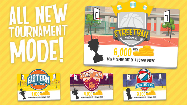 玩家要控制着球员,疯狂地扭起胳膊,把球抢到手并成功扣篮。新作的画风从像素风变成了卡通风,并且有了大的新角色、新篮球和新场地。