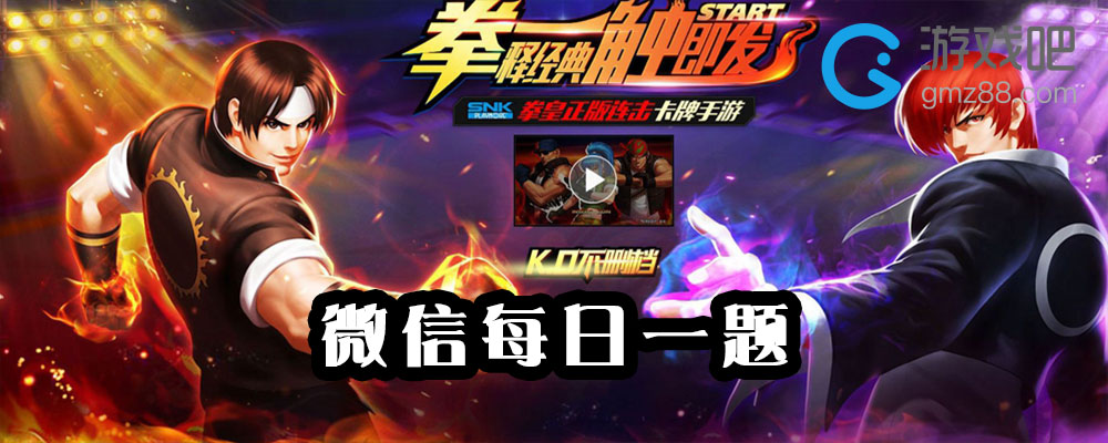拳皇98终极之战OL手游每天都会在微信上更新新的每日一题,下面游戏吧小编为大家带来每日一题:每周可以领取音巢补给礼包的音巢科技叫什么?jk答题格式:kof+答案不知道答案的格斗家,寻找答案吧~