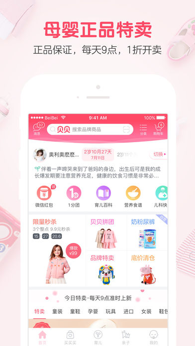 贝贝ios版v7.0.02是一款专业的母婴购物育儿app,在本作中有品牌官方授权,正品保证,全场包邮优惠多多。辣妈们快点来这里放心优惠购物吧。