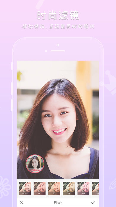 创意十足的拍照功能,尤其适合自拍,特别是女孩子。技术上对照片采取前后景分层处理, 前景会被放在经过精美设计的相框内,后景会被自动虚化,从构图上彻底美化照片,瞬间让自拍照文艺范十足。