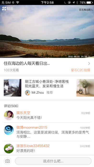 通过“萤石云视频”的视频服务,您可以轻松查看您公寓、别墅、商铺、工厂、办公室等场所的实时视频、历史录像;通过“萤石云视频”的报警服务,您可以即时接收您所关注场所的异常信息,第一时间采取安全防护措施。