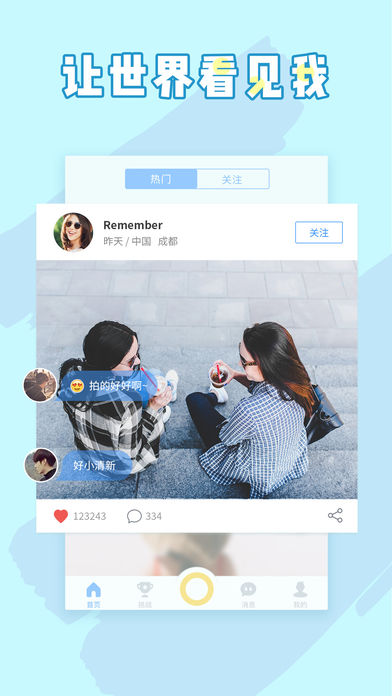 你可以通过相机去分享你的喜怒哀乐,你的故事,透过相机与世界对话!