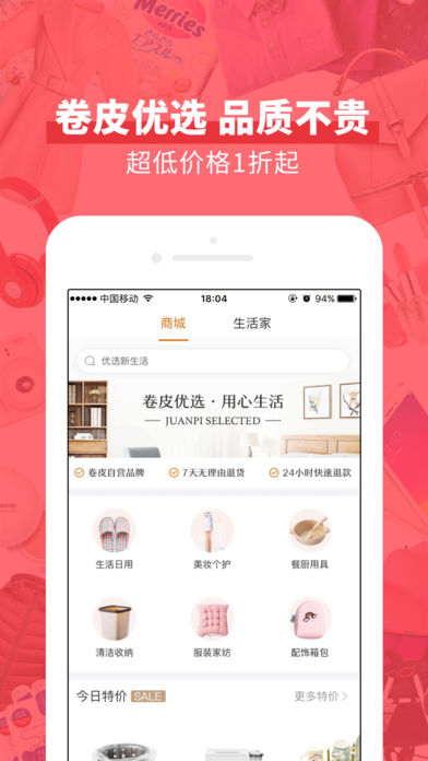 过亿用户网上购物,首选卷皮。精选爆款,低价抢购,正品保障,获得政协和科技部直接肯定。99周年庆已准备就绪,全网底价,优惠多多,买就赠,贵就赔,尽在卷皮99周年庆,整点抢购,限时秒杀,优惠叠加,抽奖不停。