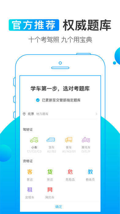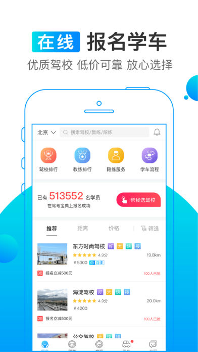 驾考宝典,最具人气的互联网综合学车考驾照平台,为学员提供从报名到领驾照全方面驾考服务的学车软件。