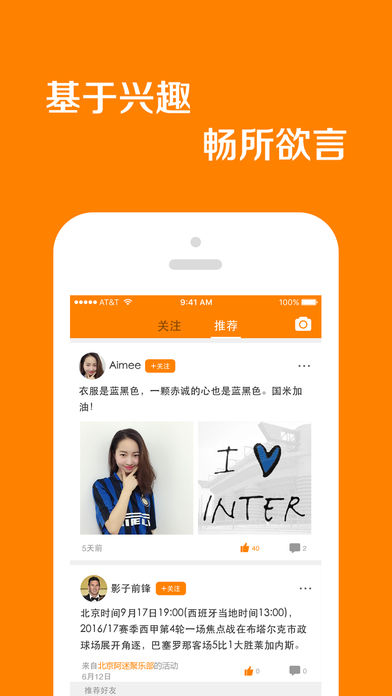 注册时添加球迷属性,推荐相关球迷联盟,加入联盟认识志趣相近的朋友,参与看球、踢球活动。