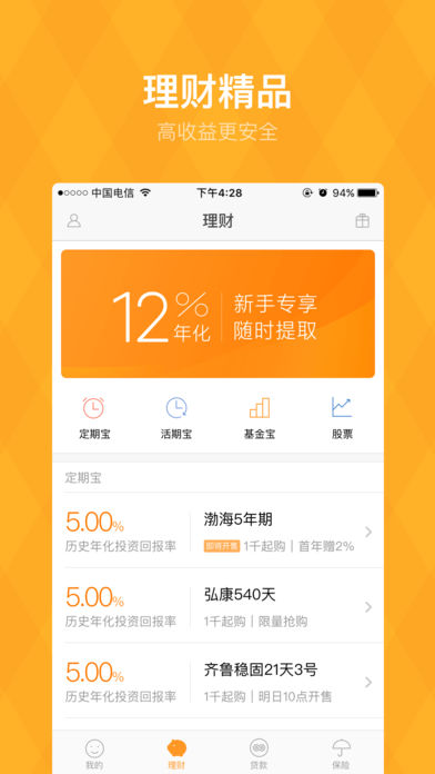 -定期理财,高收益更安全,到期可自动转活期,资产管理更灵活;