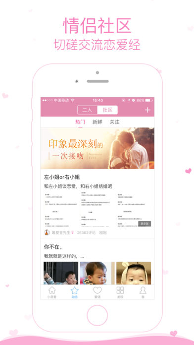 小恩爱ios版v6.2.4是一款专门为情侣打造的专属app,本作为情侣提供了私密互动工具、情侣社区等综合玩法。快点来一起记录点滴中的恩爱吧。