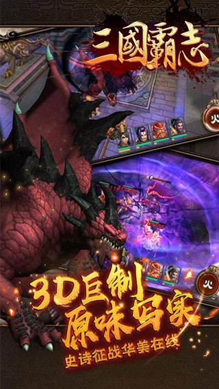 三国名将卡牌、个性真人配音、精美悍将图鉴,尽在《霸三国志》!!三国时期神兵利器、名爵宝物,各具独特效果,完美的呈现给你真三国的体验!!从未有过的史诗战斗,颠覆设计的五星武将,三国雄霸,任你争霸天下!!