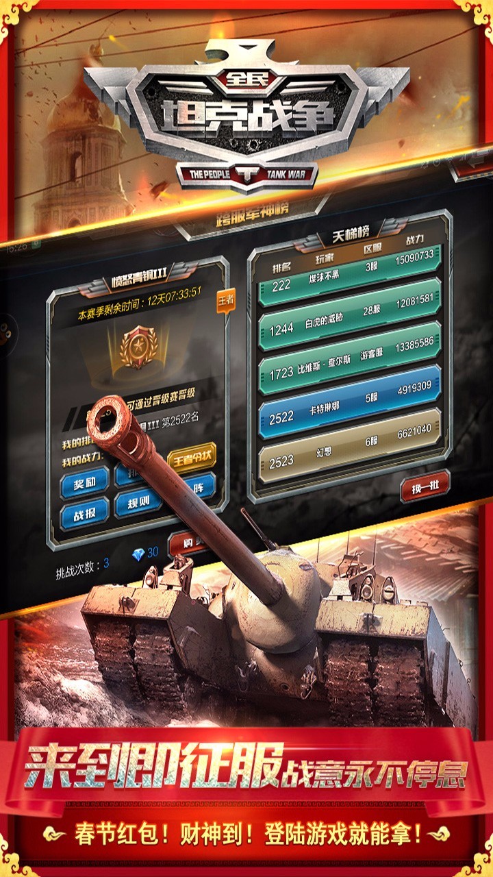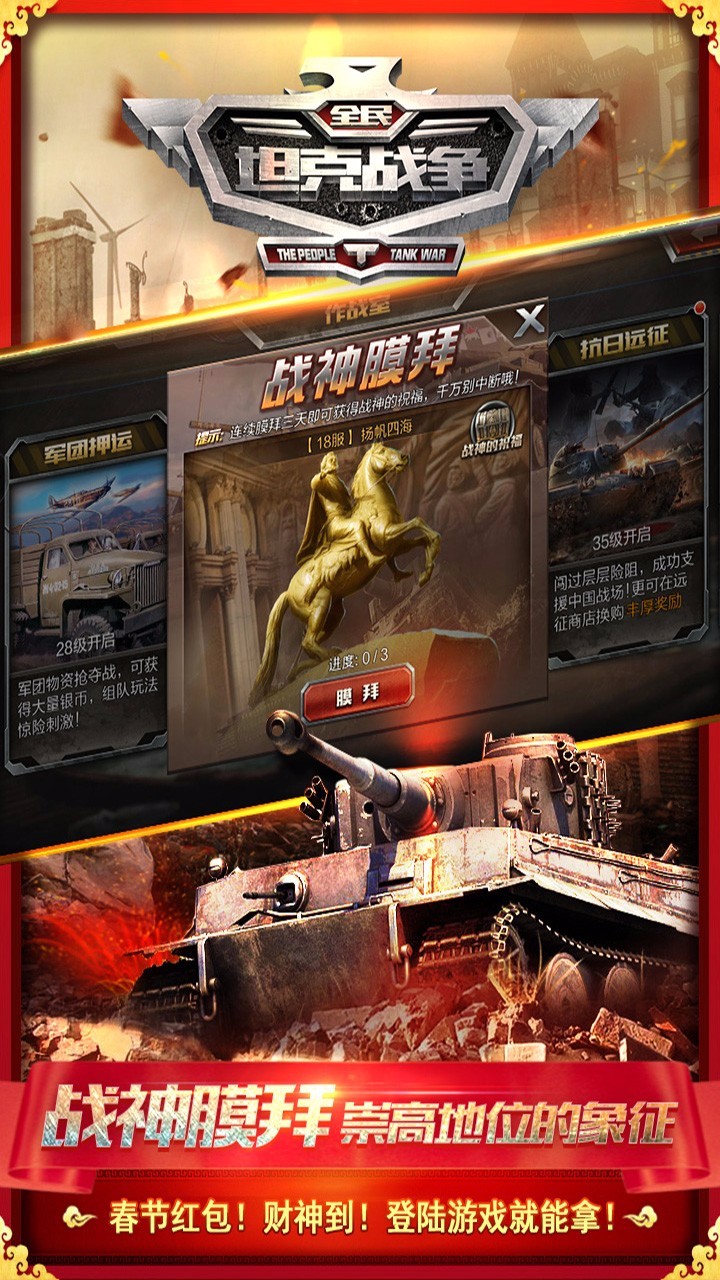 全民坦克战争ios版手游是一款非常经典的战斗RPG手游,游戏中玩家们享受不一样的战争游戏,多种类型坦克让玩家体验真实的坦克大战,玩家们快来战斗吧,非常好玩的游戏此前只能在军团中“面基”交流的战友们,马上就可以扎堆出征了!