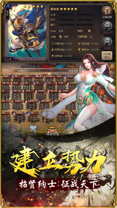 2、是不是已经厌弃了无脑堆数值的卡牌游戏了?《实锤战国志》独创连携战阵,上百种精妙武将组合各有千秋,近千种武将技能千变万化,最令人热血沸腾脑细胞燃烧的战斗系统,只为让你分分钟逆袭土豪!