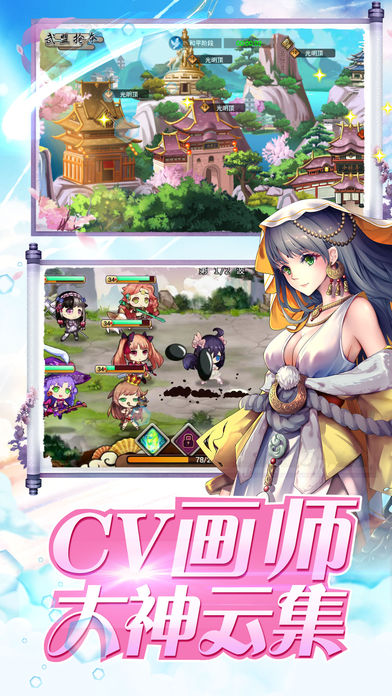 3、全女江湖世界,只要是你知道的门派,都将幻化成不同属性的萌娘,任你自由驾驭。