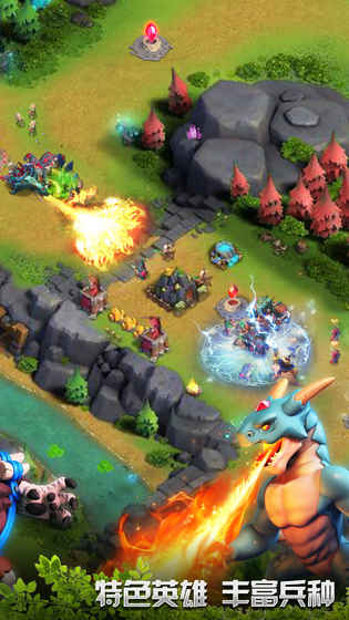 2、派遣英雄率兵进攻和防御,释放技能迎战强敌;