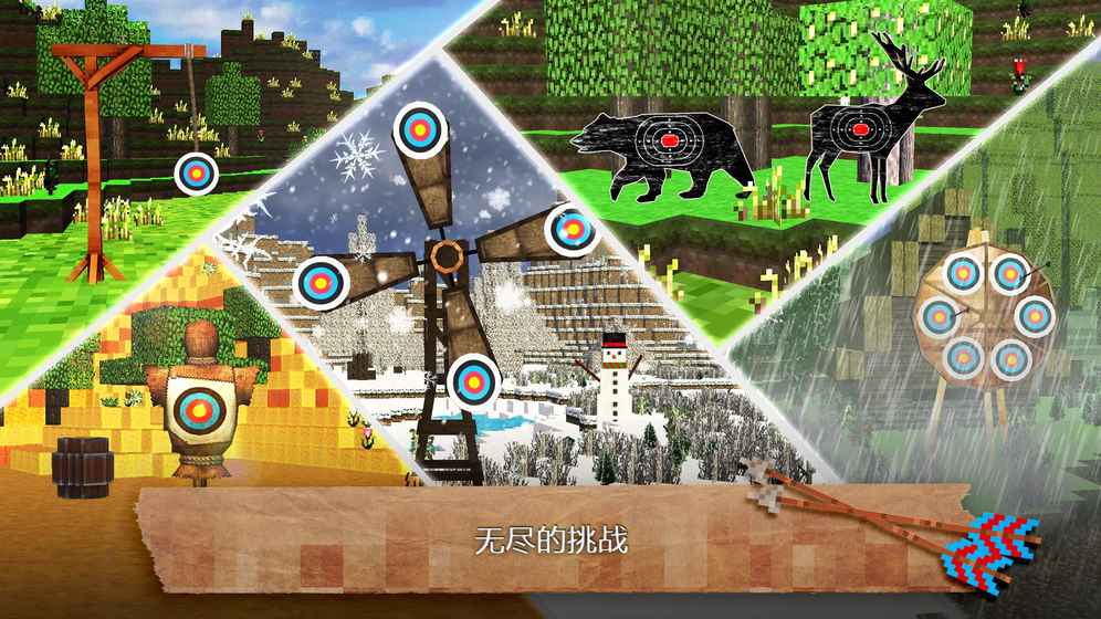 4、这全都是使用复古的像素 - 成为方块世界的弓箭大师之一!当你在世界各地射击美丽的目标时,感觉经典的气氛。