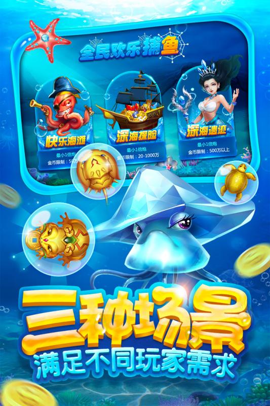 《全民欢乐捕鱼》是一款全新推出的超好玩休闲有趣的街机捕鱼休闲手游,清新唯美的海洋世界,动听优雅的背景音乐,逗趣诙谐的真人配音,而你将走进不一样的捕鱼冒险,你可以在这里捕获众多可爱萌趣的鱼儿,喜欢捕鱼游戏的你赶紧来下载吧!