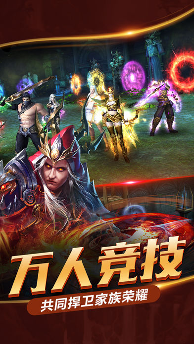 2、精美绝伦的3D场景,宏伟壮阔的世界,激情万丈的跨服争霸,让你随时随地尽情享受万人同屏PK的快感;