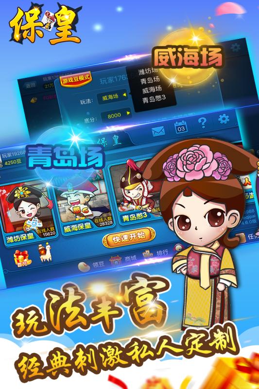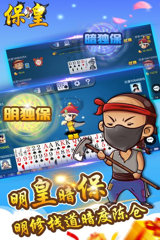 多乐保皇ios版手游是风靡全山东的特色经典扑克游戏。不仅包含单机版、联网版,而且还囊括了青岛玩法、威海玩法、潍坊玩法,同时还分进贡、非进贡场次。每天数十万玩家在线,免费下载、无需注册、安装后即可游戏。