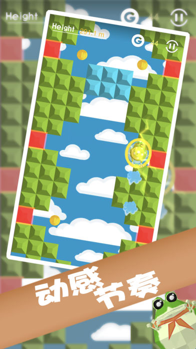 2、滑动屏幕,青蛙将借助舌头的弹力将自己弹到更高的地方