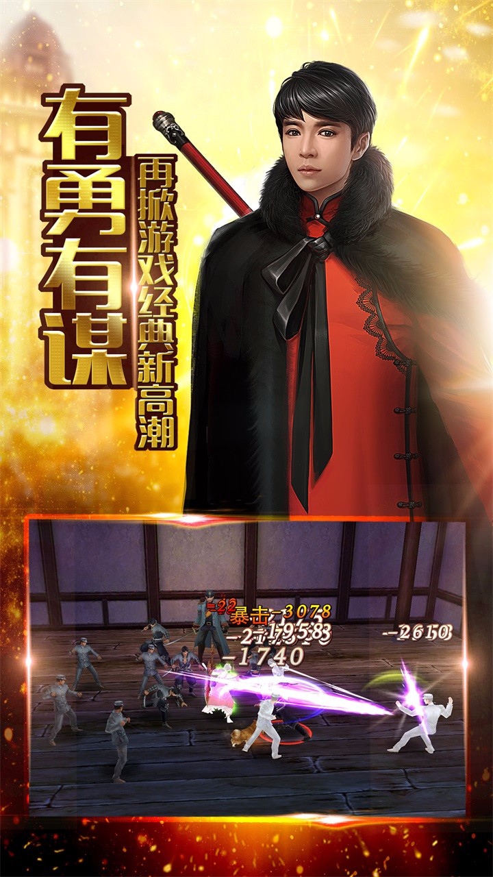 游戏以大规模战斗玩法为核心,重点打造战场及帮战玩法;玩家不仅能在战场上以一敌百,还能在帮战中据地为王。